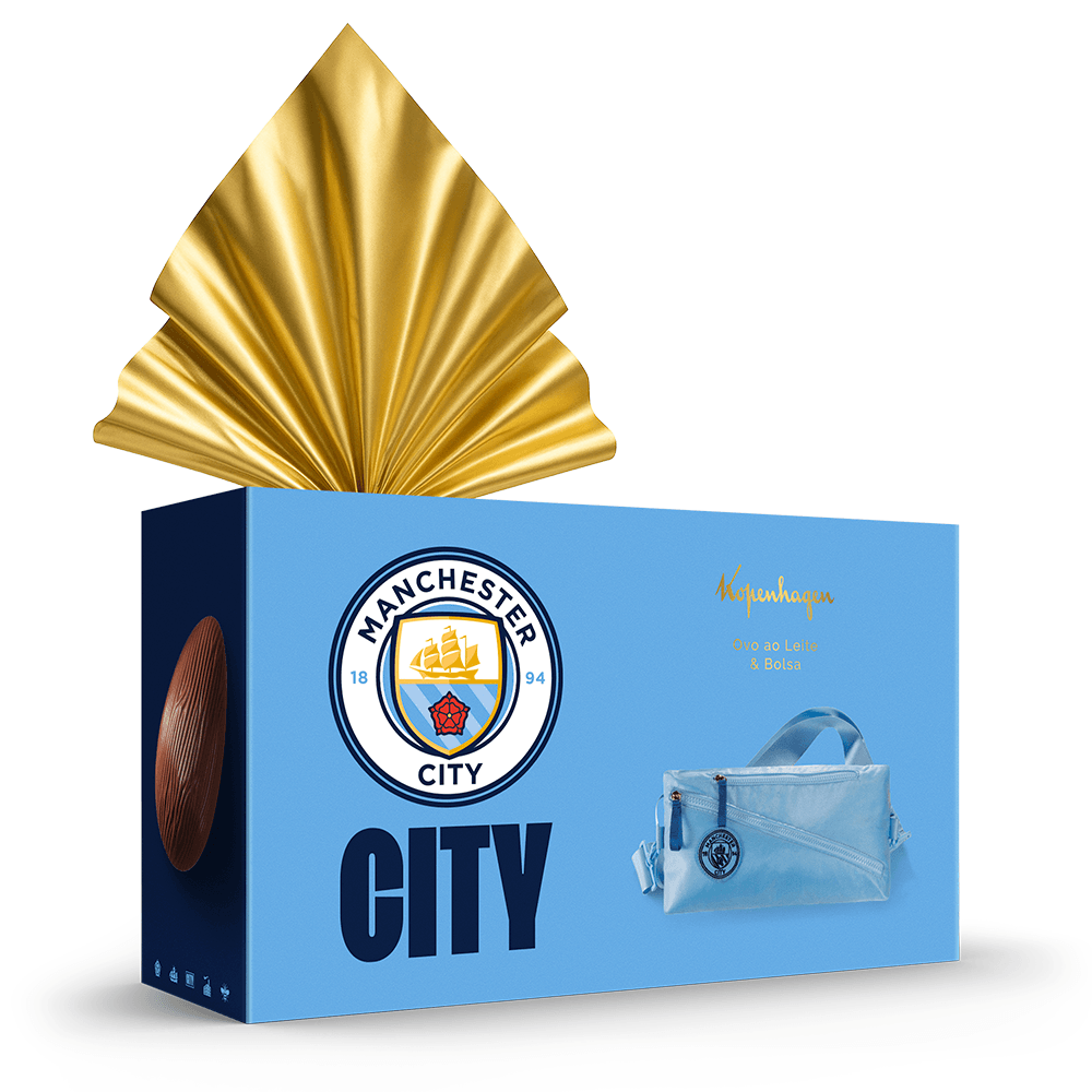 O sabor do chocolate ao leite Kopenhagen encontra a paixão pelo futebol. O Ovo Manchester City vem com uma bolsa exclusiva, ideal para levar chuteiras ou qualquer item do dia a dia com praticidade e estilo. Um presente oficial para quem carrega o time europeu no coração.