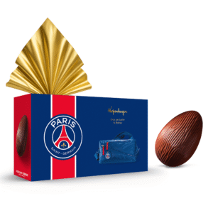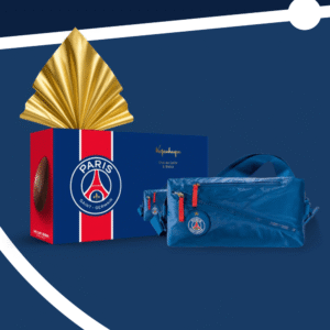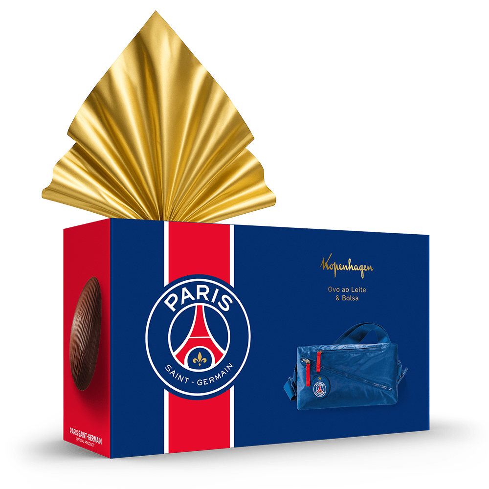 O clássico chocolate ao leite Kopenhagen ganha um toque de elegância esportiva no Ovo Paris Saint-Germain. Acompanha uma bolsa exclusiva, prática e estilosa, perfeita para levar chuteiras ou outros itens essenciais do seu dia a dia. Uma combinação que une sabor, funcionalidade e o charme icônico do PSG.