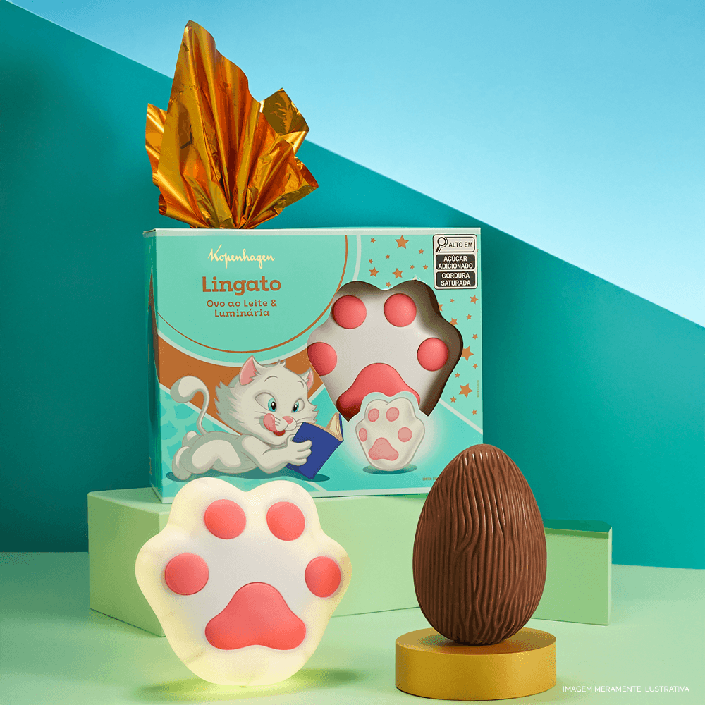 O irresistível chocolate ao leite Lingato agora vem acompanhado de uma luminária exclusiva em formato de patinha de gato, perfeita para decorar quartos ou criar um ambiente aconchegante. Um presente fofo, saboroso e cheio de personalidade, ideal para tornar a Páscoa ainda mais divertida e memorável.