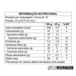 açúcar, leite em pó integral, manteiga de cacau, pasta de cacau, Licor de cereja, pedaços de cerejas, vinho tinto, água, canela em pó, xarope de glicose, rum, álcool de cereais, emulsificante lecitina de soja, aromatizantes e estabilizante carboximetilcelulose sódica. ALÉRGICOS: CONTÉM DERIVADOS DE LEITE E SOJA. PODE CONTER AMENDOIM, AMÊNDOA, AVEIA, AVELÃS, CASTANHAS, CASTANHA-DE-CAJU, CASTANHA-DO-BRASIL, CENTEIO, CEVADA, MACADÂMIAS, NOZES, OVOS, PECÃS, PINOLI, PISTACHES E TRIGO. CONTÉM LACTOSE. CONTÉM GLÚTEN. -