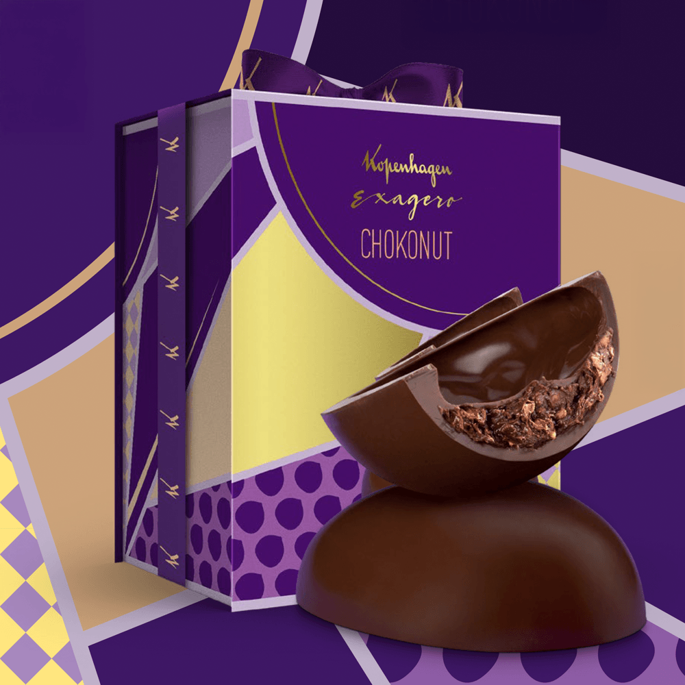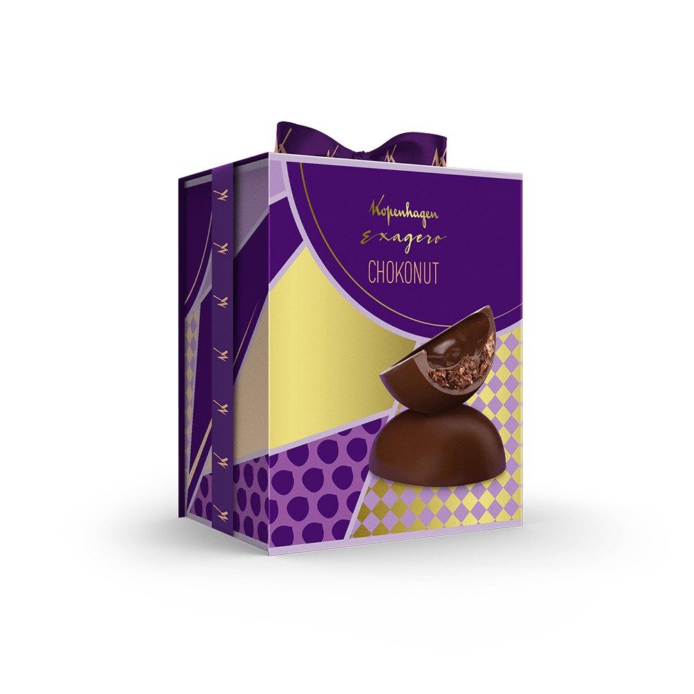 Sabor e cremosidade que você só encontra na Kopenhagen! Este é o Ovo de Páscoa Exagero Chocokut: feito com a combinação do nosso irresistível chocolate ao leite e avelã. Para você se deliciar a cada mordida, aproveite! Um verdadeiro Exagero de sabor!