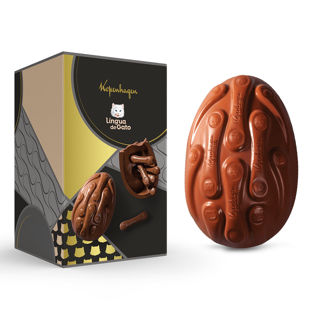 Celebre a Páscoa com o máximo de sabor com o Ovo Língua de Gato ao Leite, um clássico que só a Kopenhagen sabe fazer. Ovo de chocolate ao leite acompanha 12 unidades de chocolate ao leite Língua de Gato.